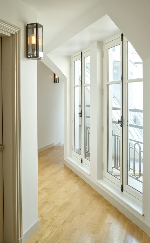 La valorisation des surfaces délaissées d’un ensemble immobilier de type haussmannien situé en plein cœur du IVe arrondissement entre la Seine et la Bastille. Transformer un ensemble de 600m² de chambres de services et de parties communes réparties sur deux niveaux, en appartements de haut standing. Curage complet de ces surfaces, prolongement des cages d’escalier et des ascenseurs existants afin de desservir ce niveau supplémentaire. Un soin particulier a été apporté dans la conception et la composition de ces 8 appartements, privilégiant les pièces de vie et de réception : espaces ouverts, lumière naturelle et vues sur la skyline. Les suites parentales ont fait place aux chambres : fonctionnalité et intimité. Matériaux et équipements de finitions : parquet massifs, pierre, marbre, inox et corian. •