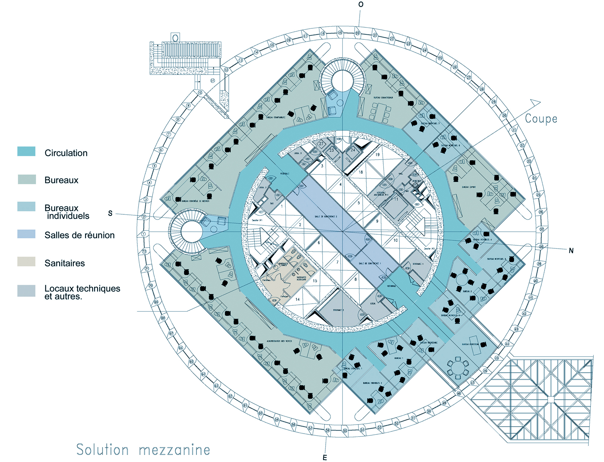 Dans le cadre d’un programme de réhabilitation et de valorisation de l’immeuble Citicenter, le projet de réaménagement du hall d’accueil principal donnant sur le Parvis de la Défense comprend la création de : – une nouvelle façade – un nouveau volume pour le hall d’accueil ; – une triplex d’ascenseurs en remplacement des escalators existants pour relier les niveaux -3 à 0 ; – une boutique de 114 m² et une autre de 530 m². •